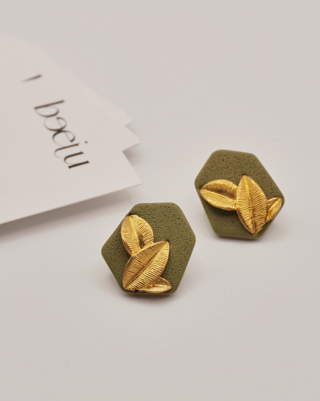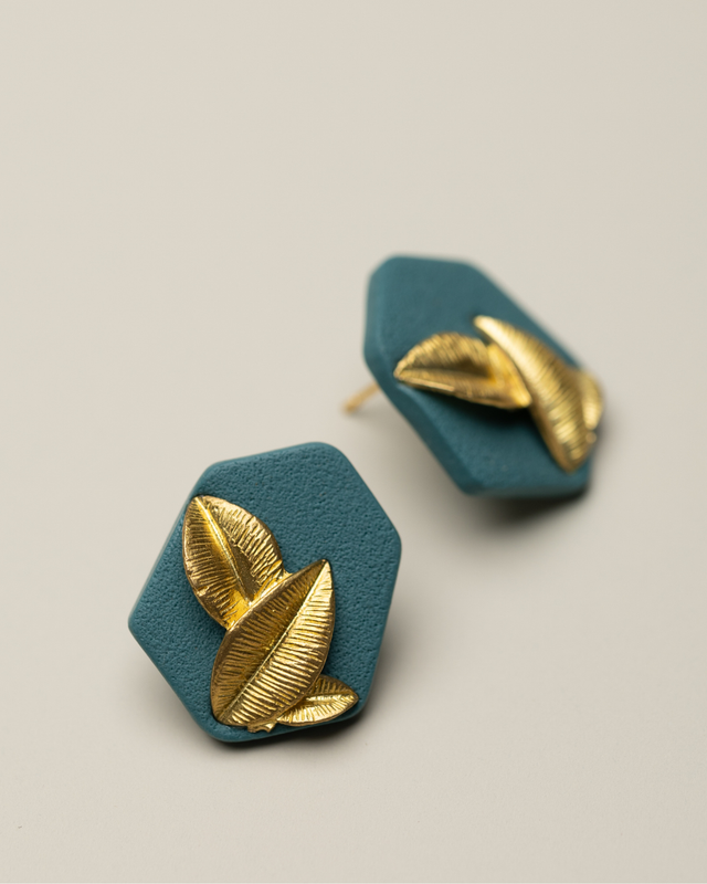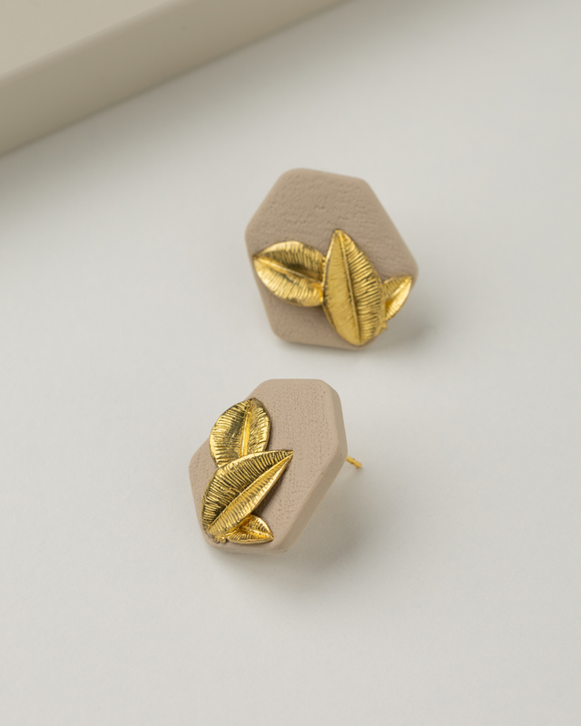 As folhas douradas, em aço inoxidável, acrescentam um detalhe delicado, inspirado na natureza e na simplicidade das formas orgânicas.
